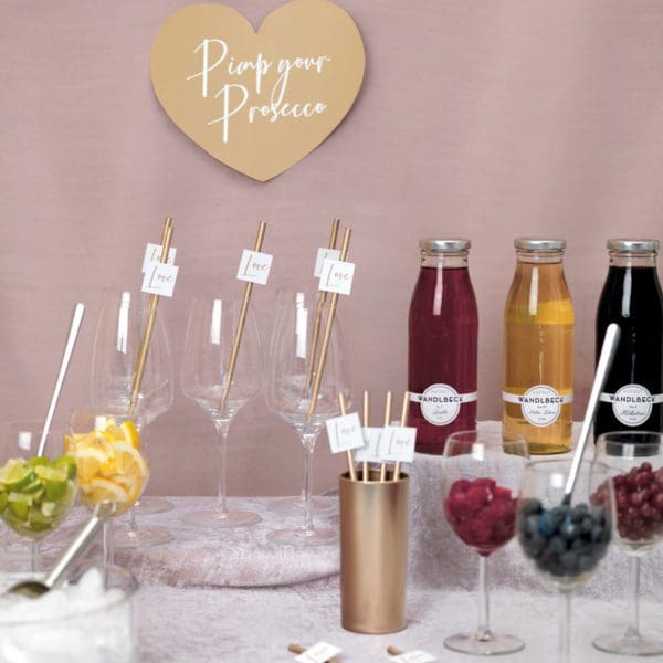 So könnt ihr entweder die tollsten Getränke kreieren oder euren Gästen mit einer "Pimp your Prosecco Bar" selbst die Wahl überlassen, welche Kombinationen sie gerne ausprobieren möchten.