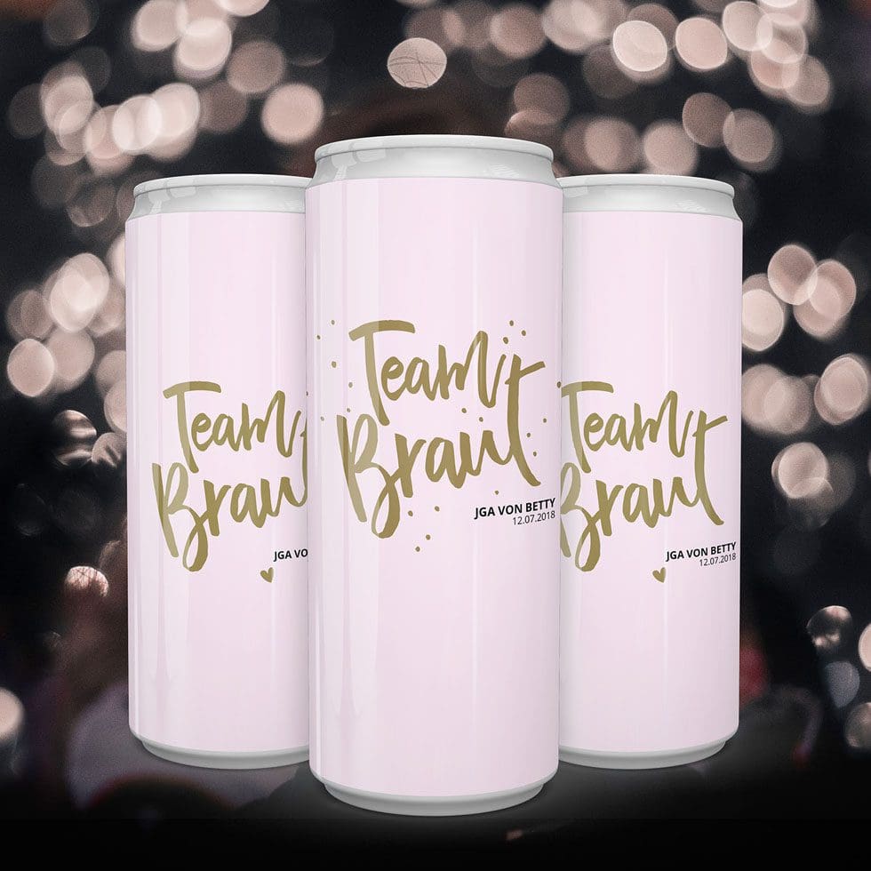 Frisch gekühlte Sektdosen mit coolem, individuellem Team-Braut Look – wer kann dazu schon Nein sagen!?