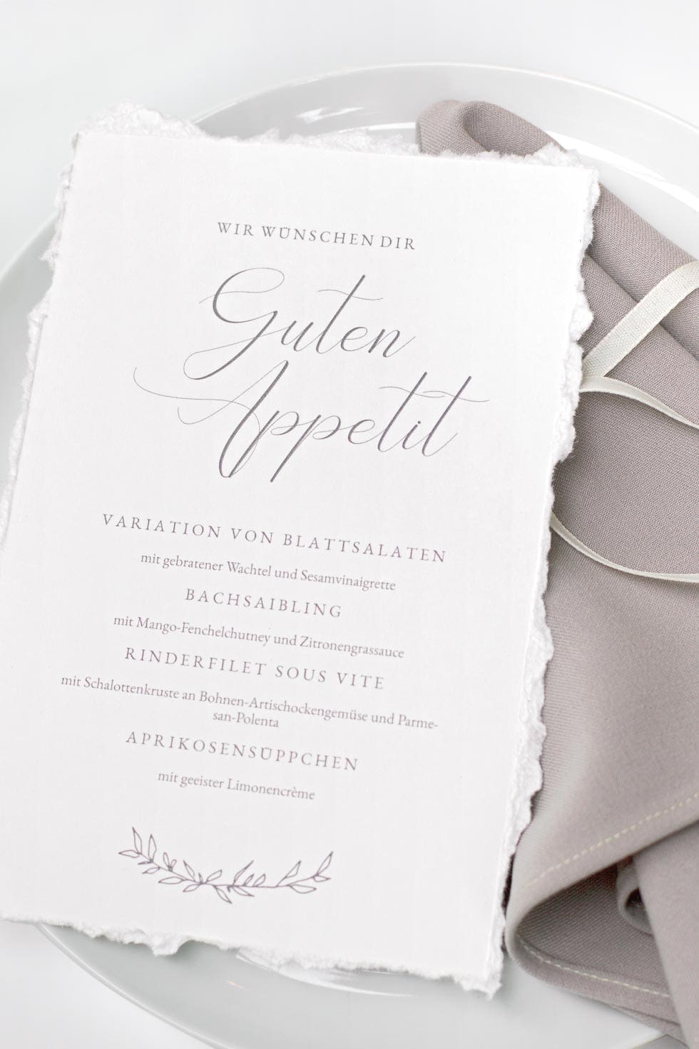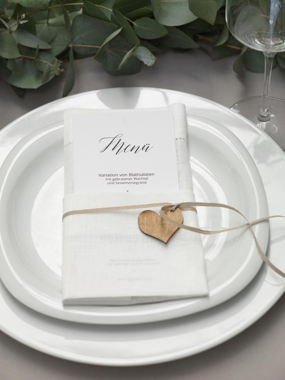 Bei festlichen Tischdekorationen ist es besonders schön, wenn ihr das Menü in der Bestecktasche der Serviette ergänzt.