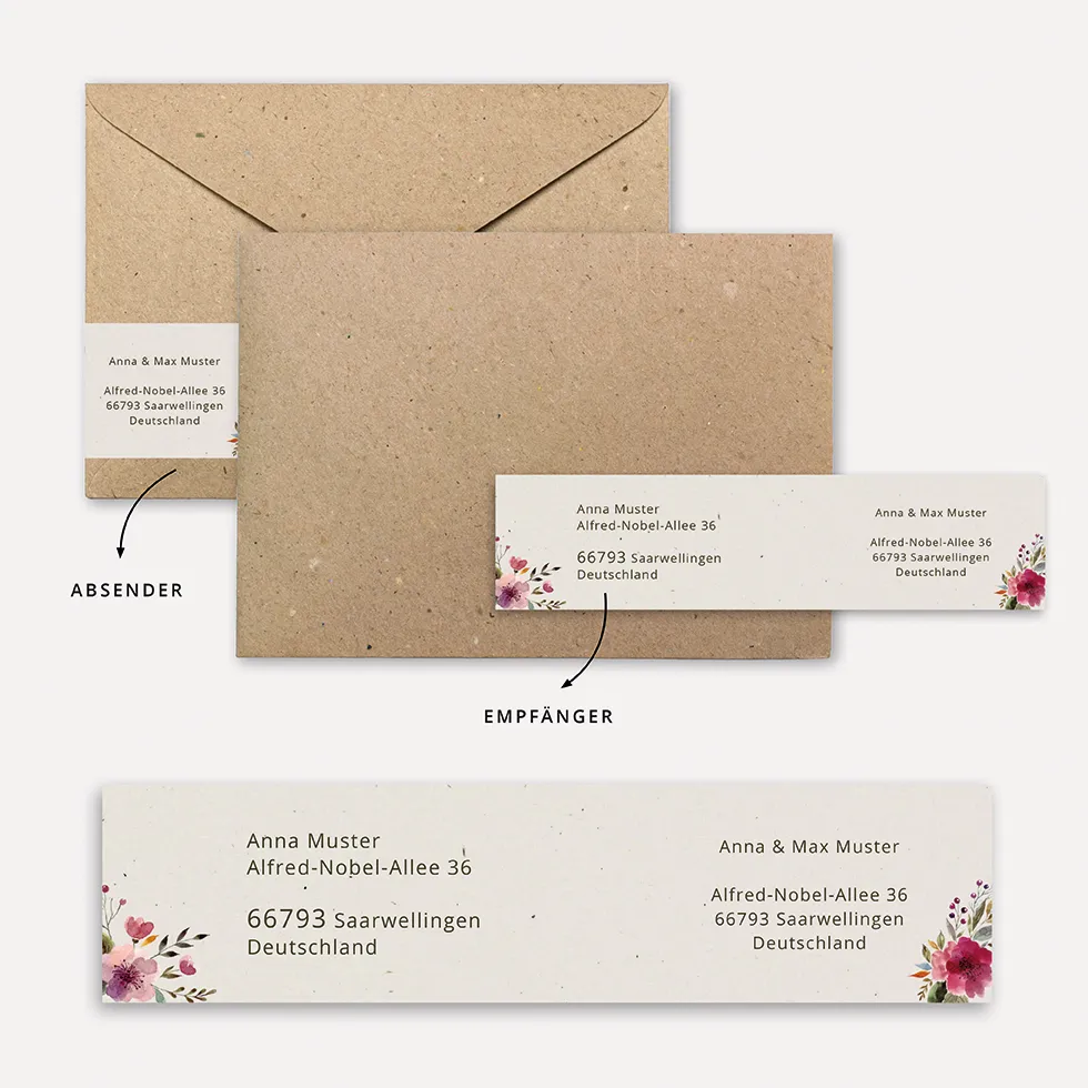 Die Etiketten sind als Tabelle angelegt und können mit Seriendruck-Funktion verwendet werden: Verknüpft eure Adressen aus der Gästeliste und lasst sie automatisch einspielen (Videoanleitung enthalten).