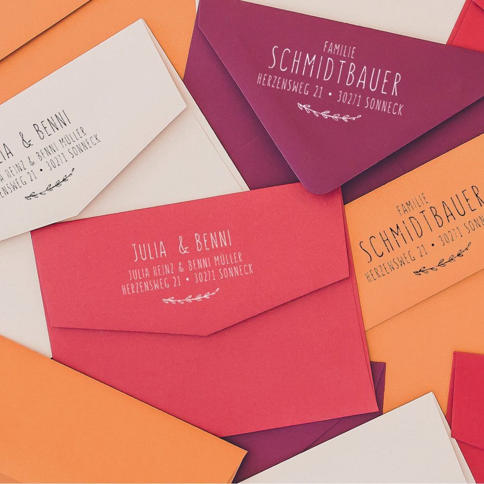 Tipp: Passt die Stempelfarbe individuell an die Farbe des Umschlags an wie in unseren Beispielen gezeigt.