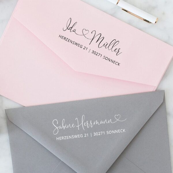 Liebevoll individuell gestalteter, hochwertiger Adressstempel