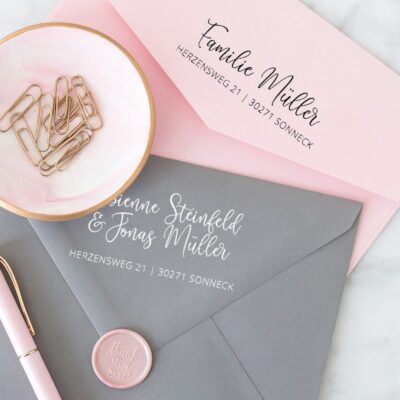 Tipp: Passt die Stempelfarbe individuell an die Farbe des Umschlags an wie in unseren Beispielen gezeigt.