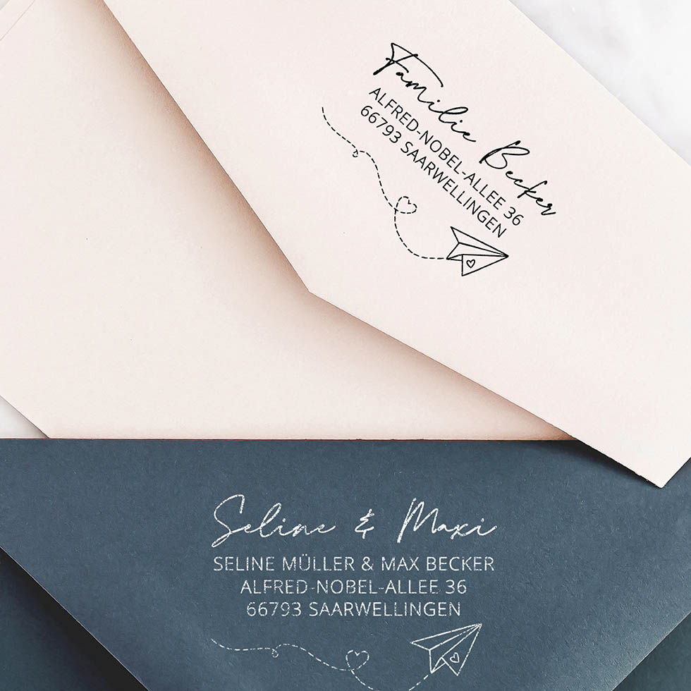 Tipp: Passt die Stempelfarbe individuell an die Farbe des Umschlags an wie in unseren Beispielen gezeigt.