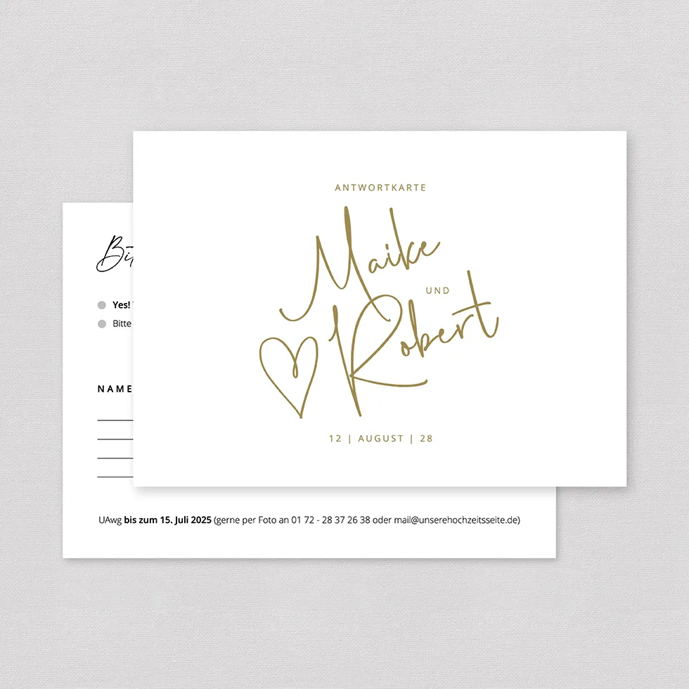 Direkt nach dem Bestelleingang erhaltet ihr eure Antwortkarten-Vorlage zum Downloaden in verschiedenen Formaten in hochwertiger Druckauflösung als PDF, JPG und PNG.