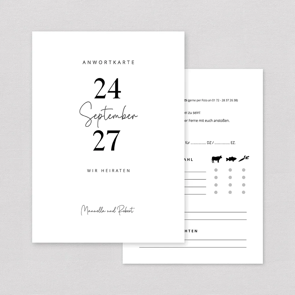 Direkt nach dem Bestelleingang erhaltet ihr eure Antwortkarten-Vorlage zum Downloaden in verschiedenen Formaten in hochwertiger Druckauflösung als PDF, JPG und PNG.