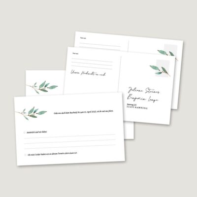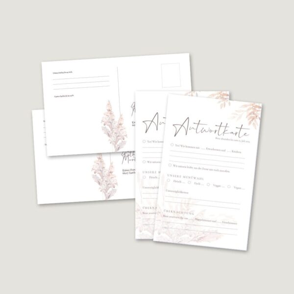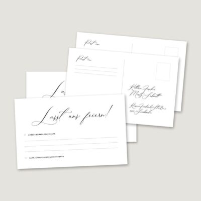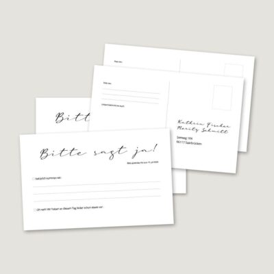 Direkt nach dem Bestelleingang erhaltet ihr eure Antwortkarten-Vorlage zum Downloaden in verschiedenen Formaten in hochwertiger Druckauflösung als PDF, JPG und PNG.