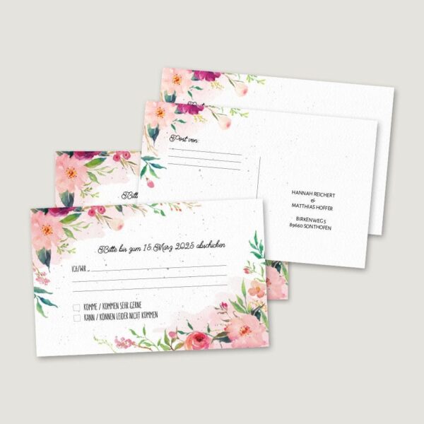 Direkt nach dem Bestelleingang erhaltet ihr eure Antwortkarten-Vorlage zum Downloaden in verschiedenen Formaten in hochwertiger Druckauflösung als PDF, JPG und PNG.