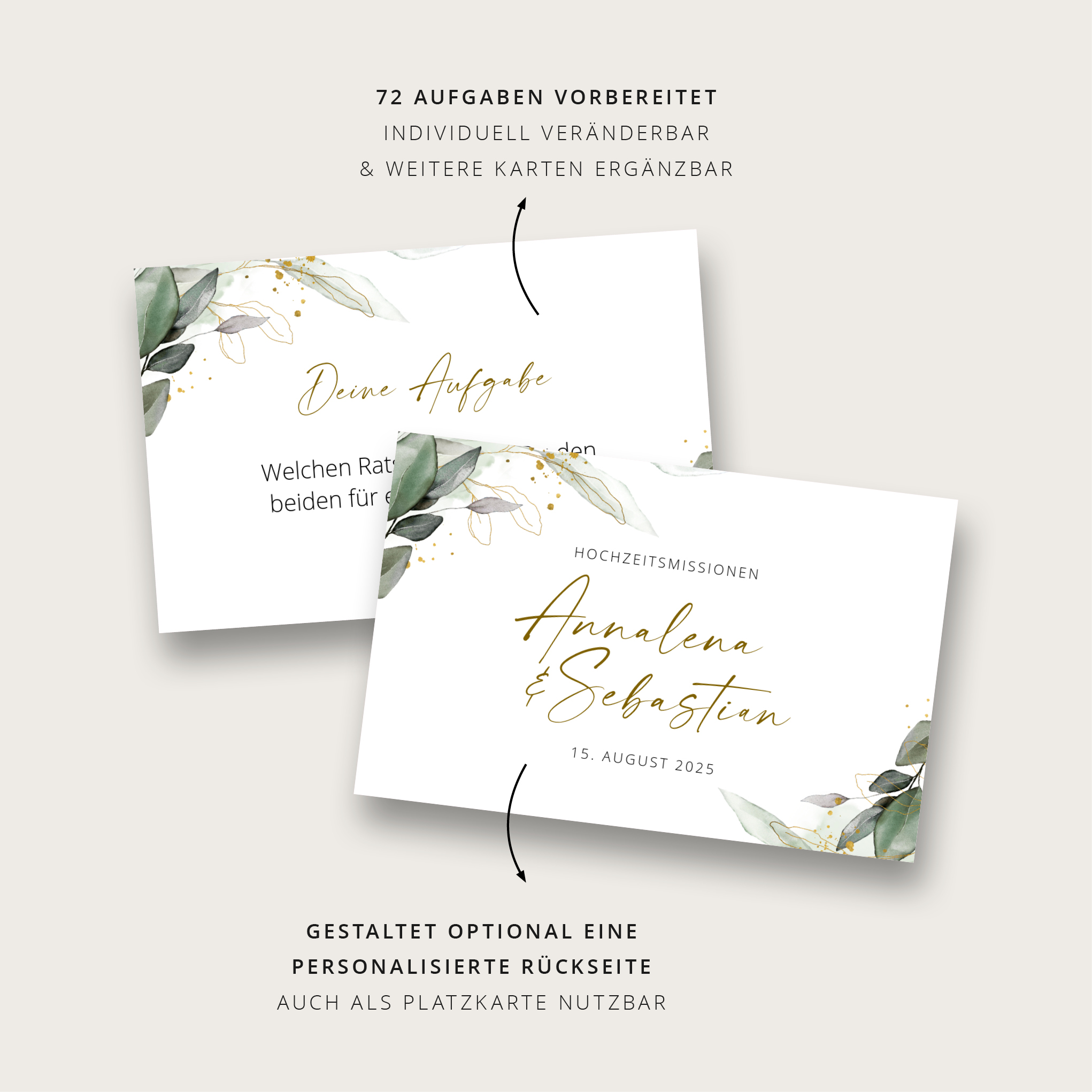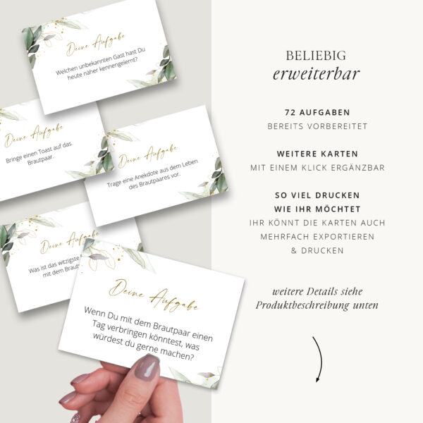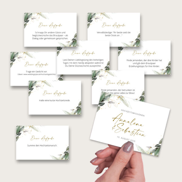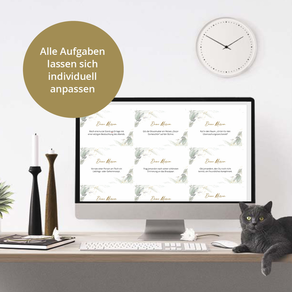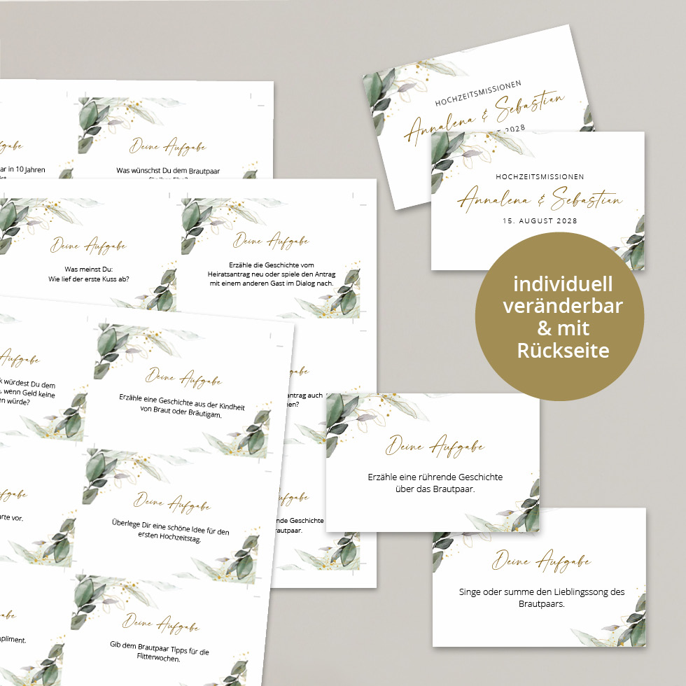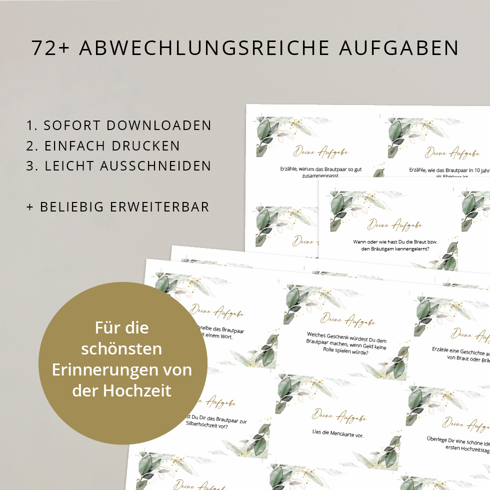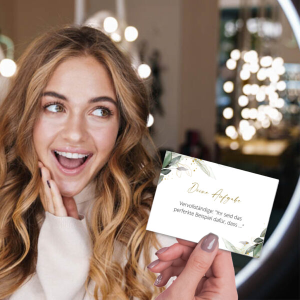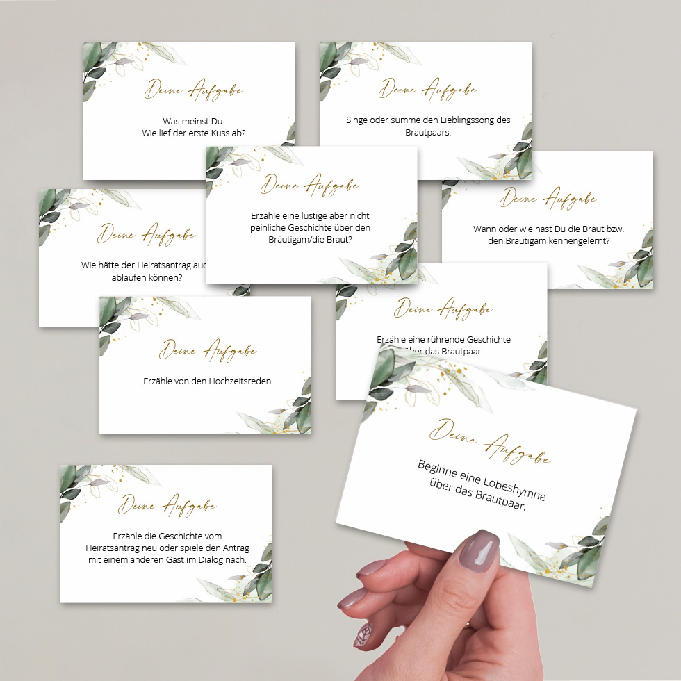 Mit den Aufgabekarten bekommen eure Gäste die besten Ideen mehr als die üblichen Floskeln im Gästebuch zu hinterlassen.