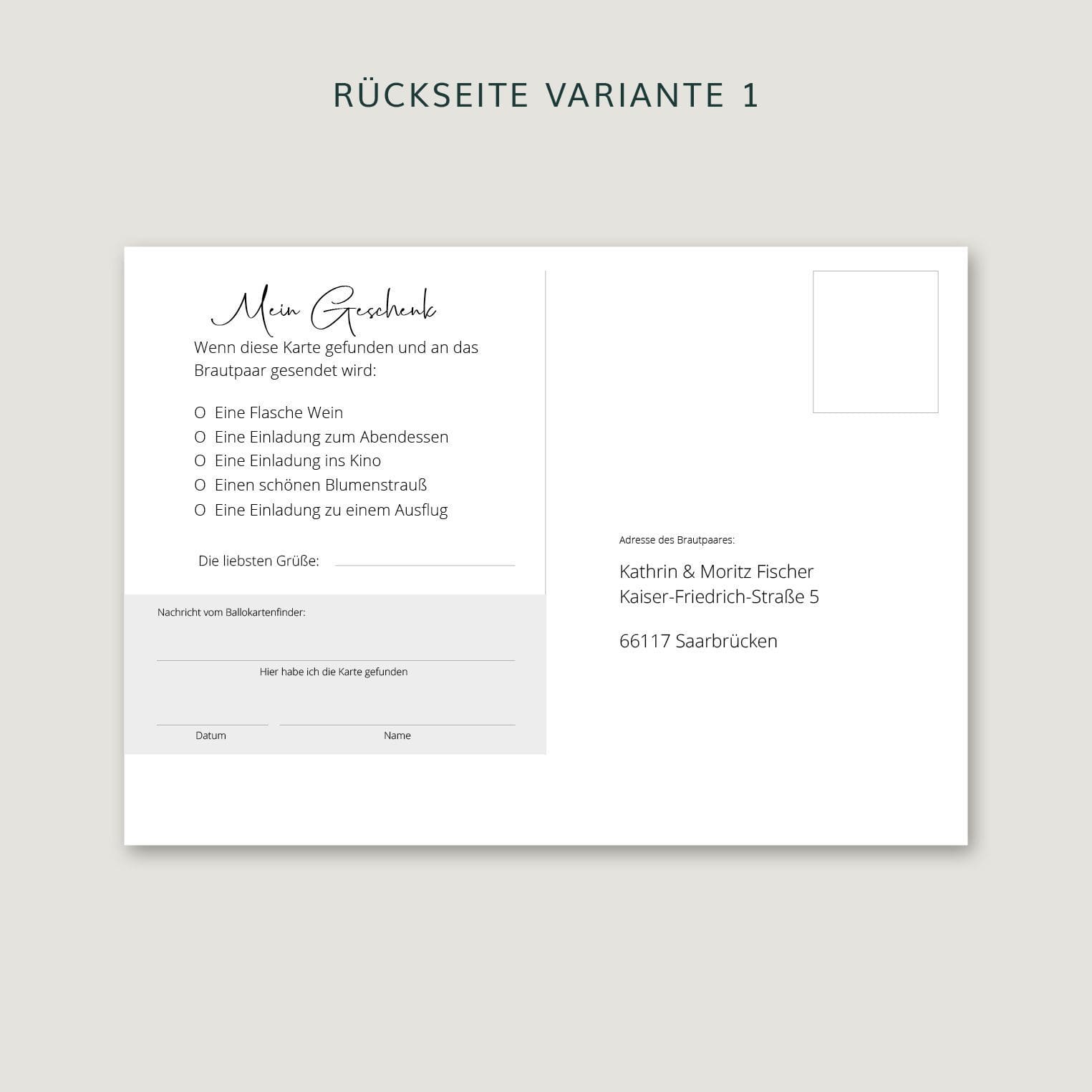 • Adresse des Brautpaars aufgedruckt – damit spart ihr euch das Beschriften