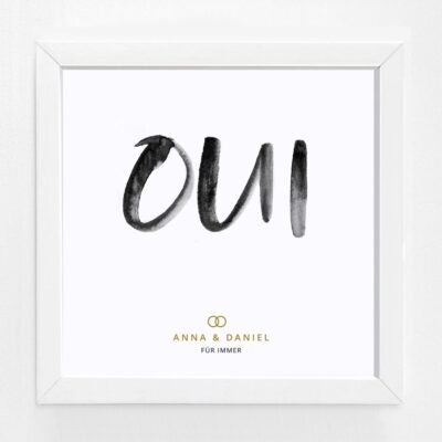 - Tragt eure Namen sowie das Hochzeitsdatum in den Konfgurator ein und wählt den Schriftzug, den ihr euch wünscht: moderne Handschrift oder elegante Kalligraphie
