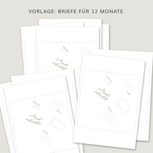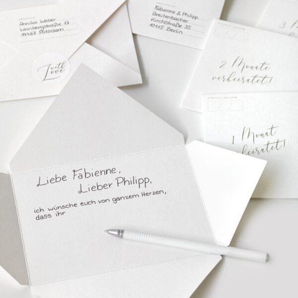 - 12 Briefumschläge: Jeweils für die 12 Monate nach der Hochzeit