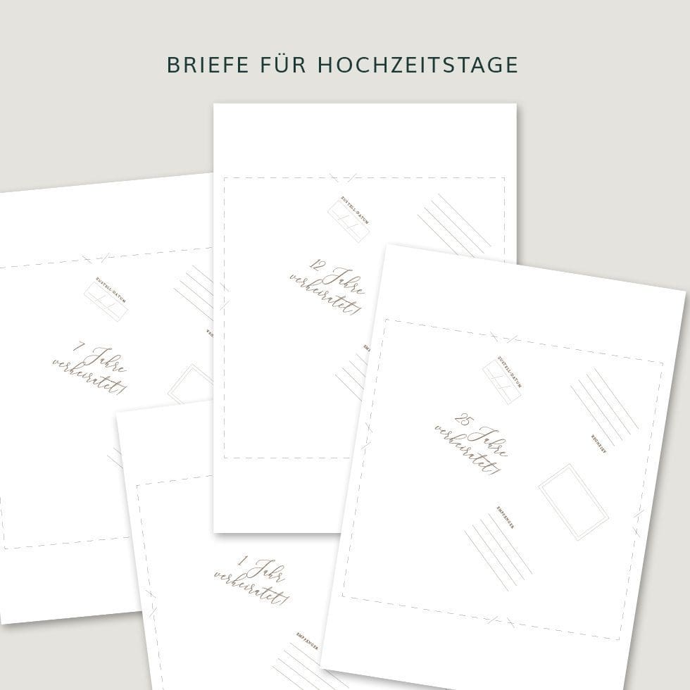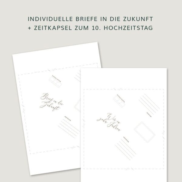 Die Briefe in die Zukunft sind ein wunderbares Geschenk, das ihr entweder als Unterhaltungspunkt während der Hochzeit oder vorbereitend für die Hochzeit organisieren könnt.