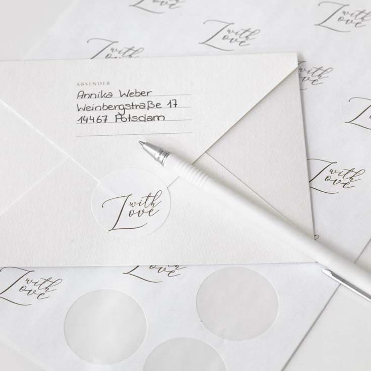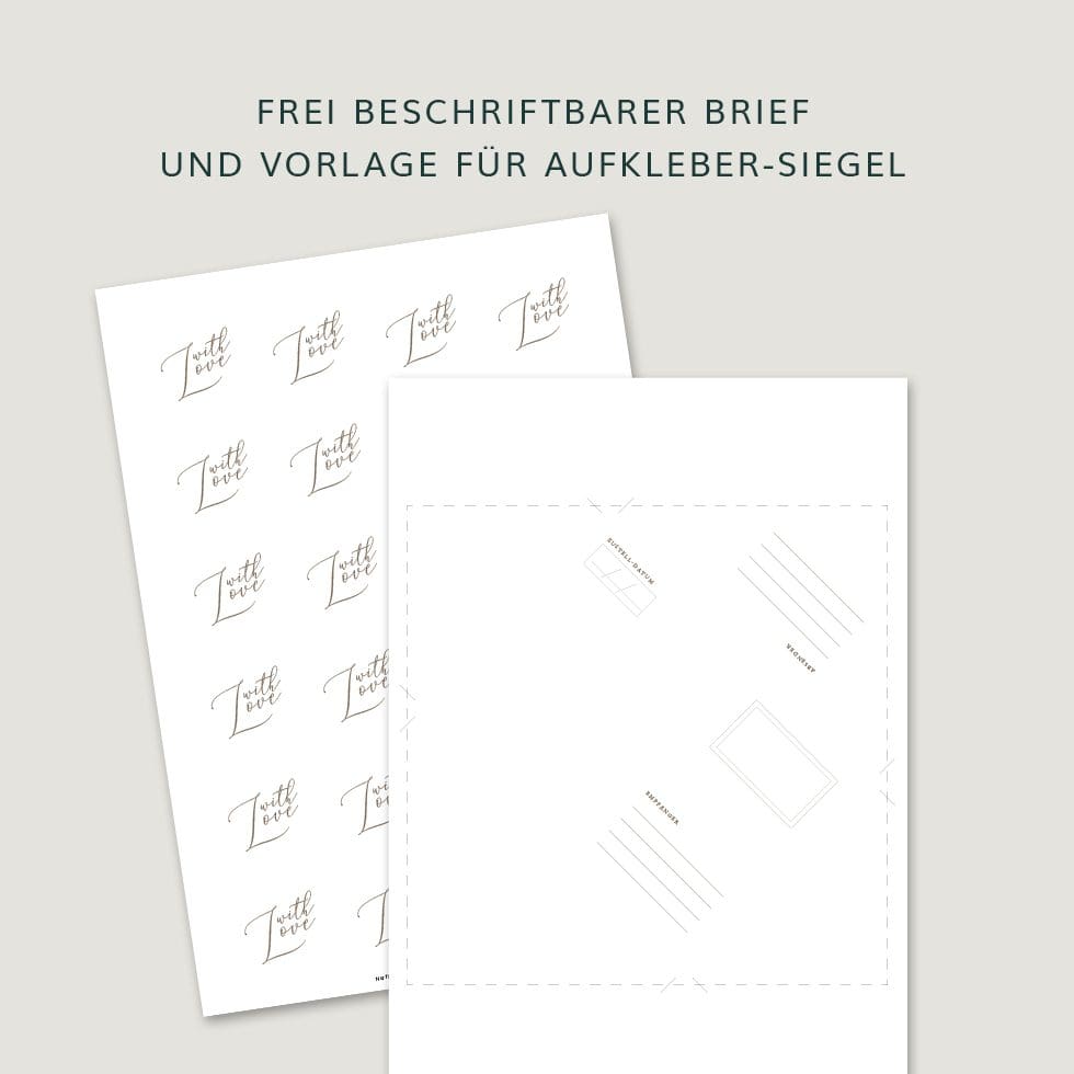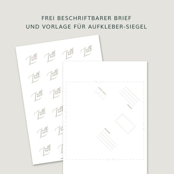 - Bonus: Aufkleber-Bögen als hübscher Siegel-Verschluss mit der Aufschrift "with Love".