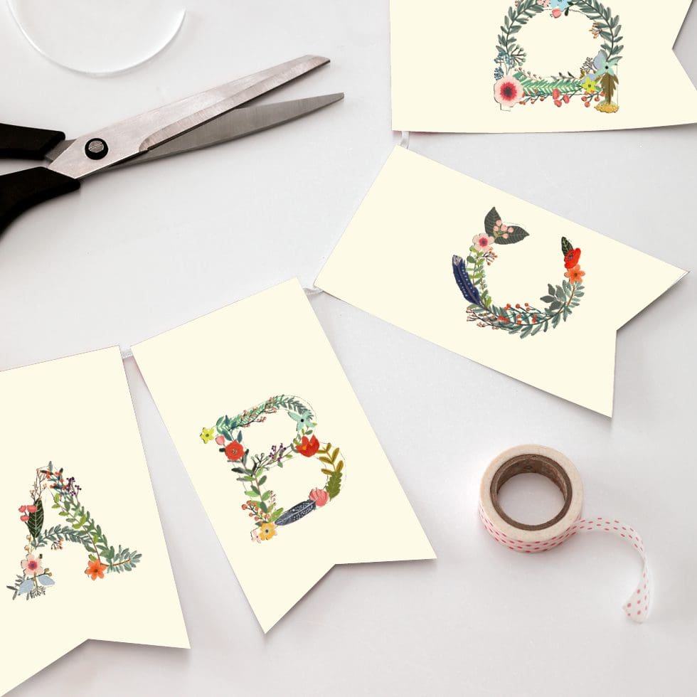 DIY Girlande mit allen Buchstaben “Blumenwiese”
