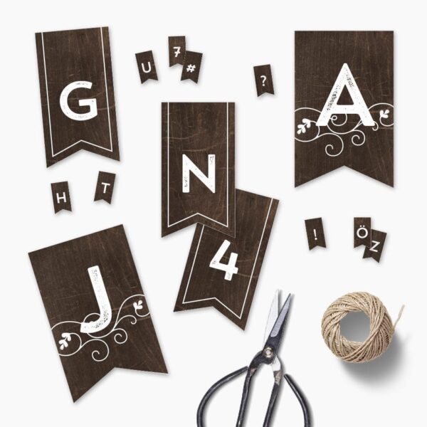 DIY Girlande mit allen Buchstaben “Holzoptik”