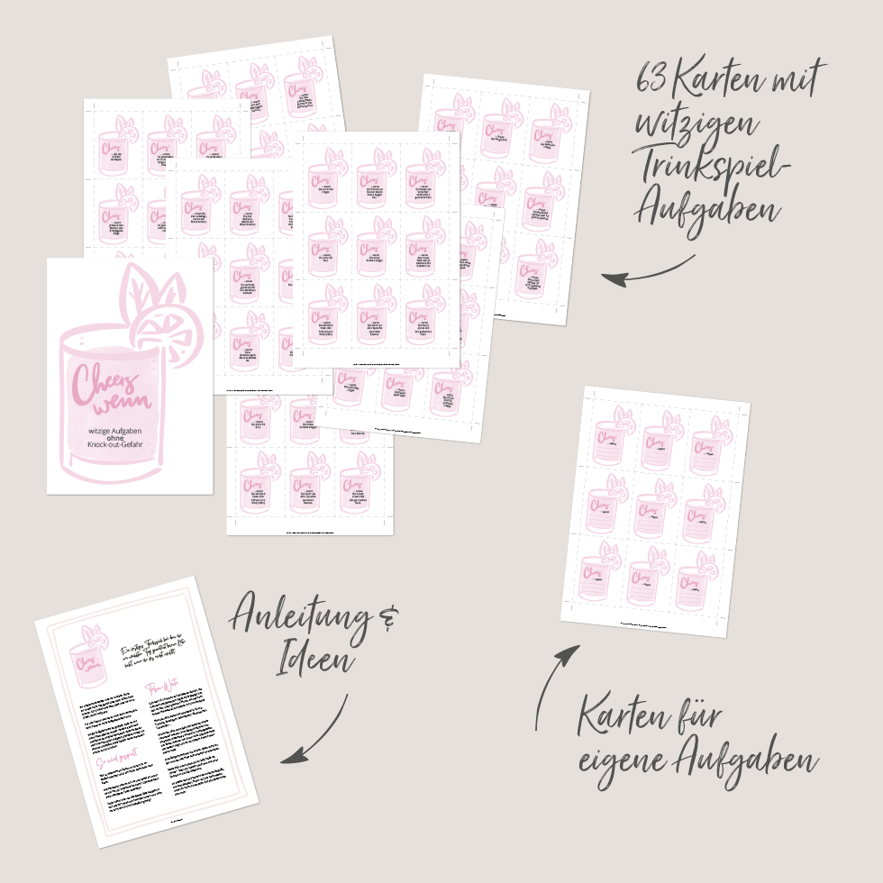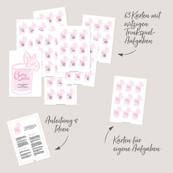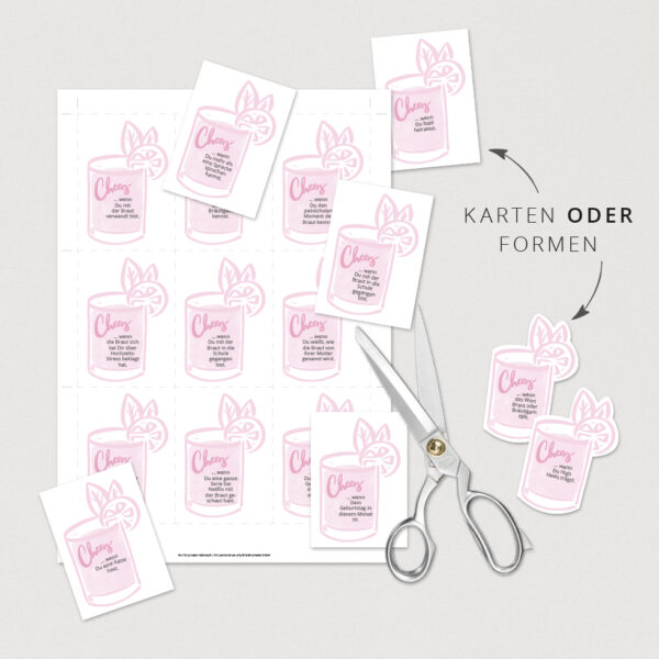 Die Karten sind so gestaltet, dass ihr sie bequem mit der Schere ausschneiden könnt – optional auch als Cocktailglas.