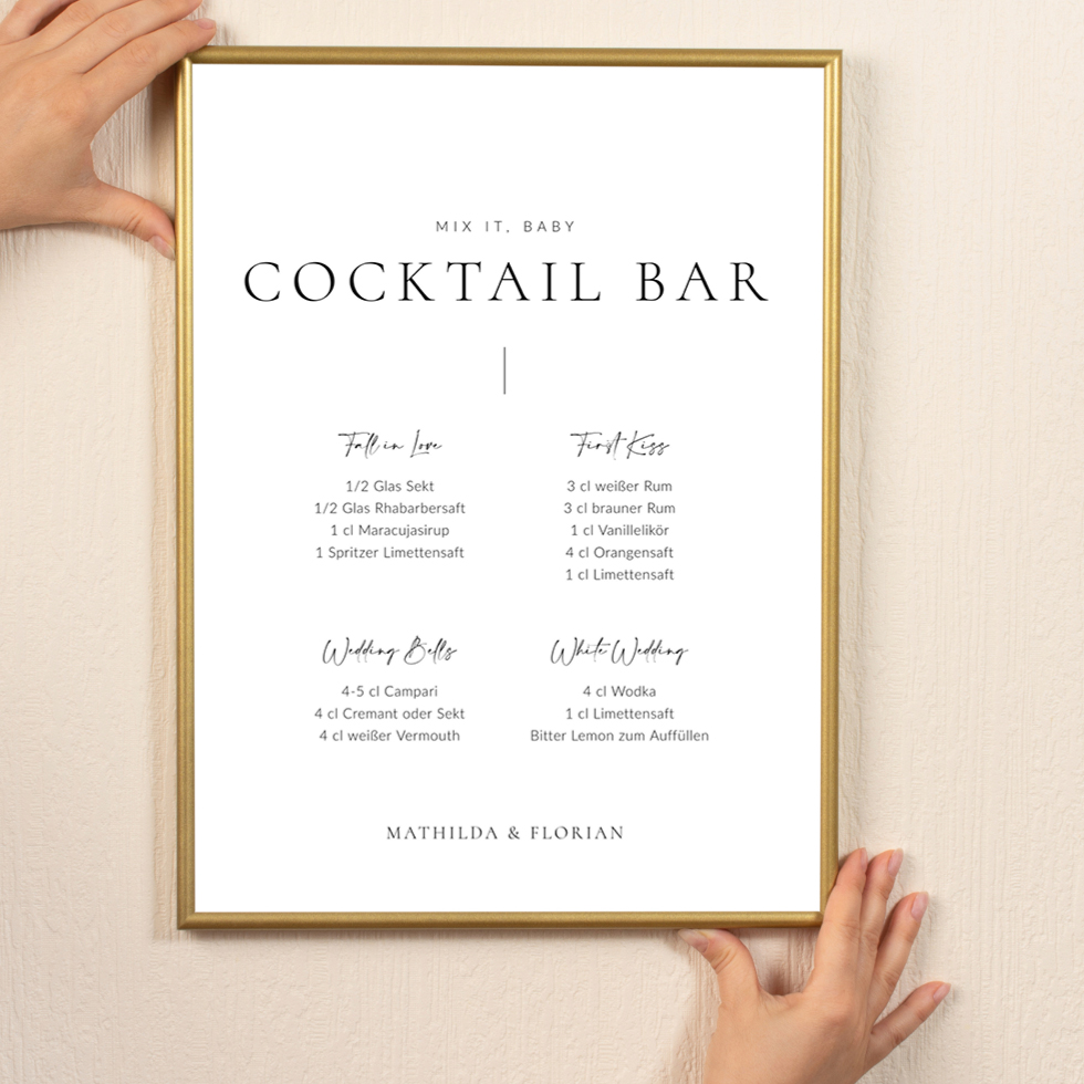 Gestaltet supereinfach ein tolles Cocktail Bar Schild für eure Hochzeit, das ihr problemlos selber drucken oder direkt bei uns auf Acryl, Leinwand, Plakat oder Board drucken lassen könnt.