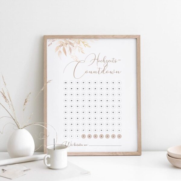 Zählt die Tage bis zur Hochzeit mit einem hübschen Plakat.