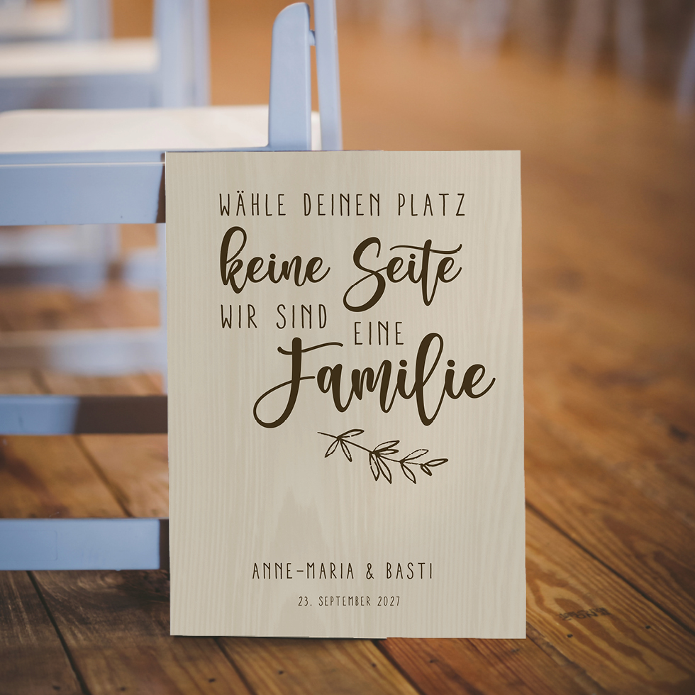 Gestaltet ein traumhaft schönes, individuelles Dekoschild für eure Hochzeit: Mit einem persönlichen Spruch wird es zum besonderen Element und unvergesslichen Detail, das sogar nach der Hochzeit noch lange an eure Hochzeit erinnert.