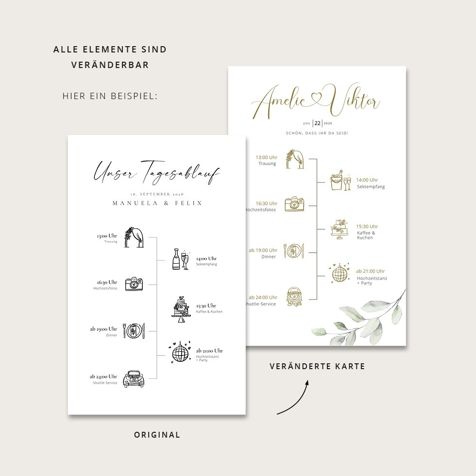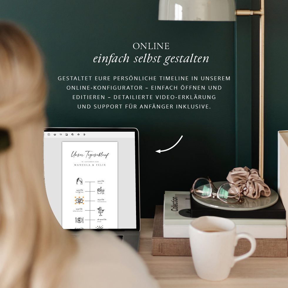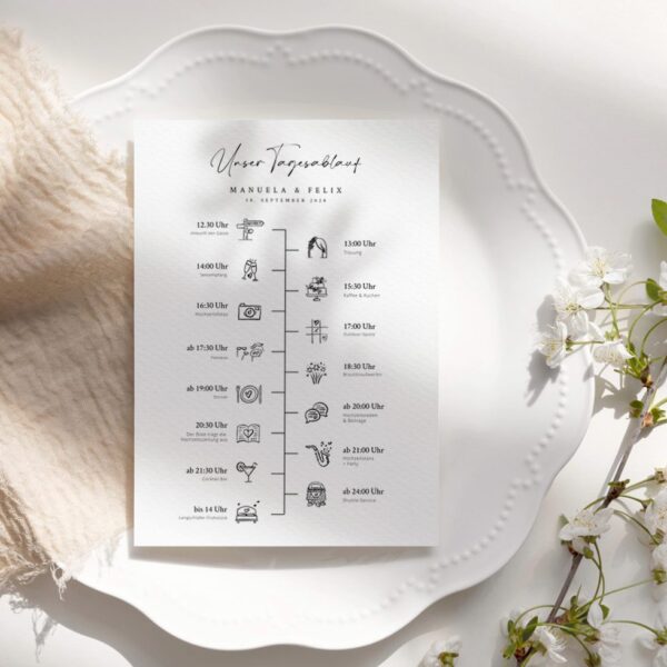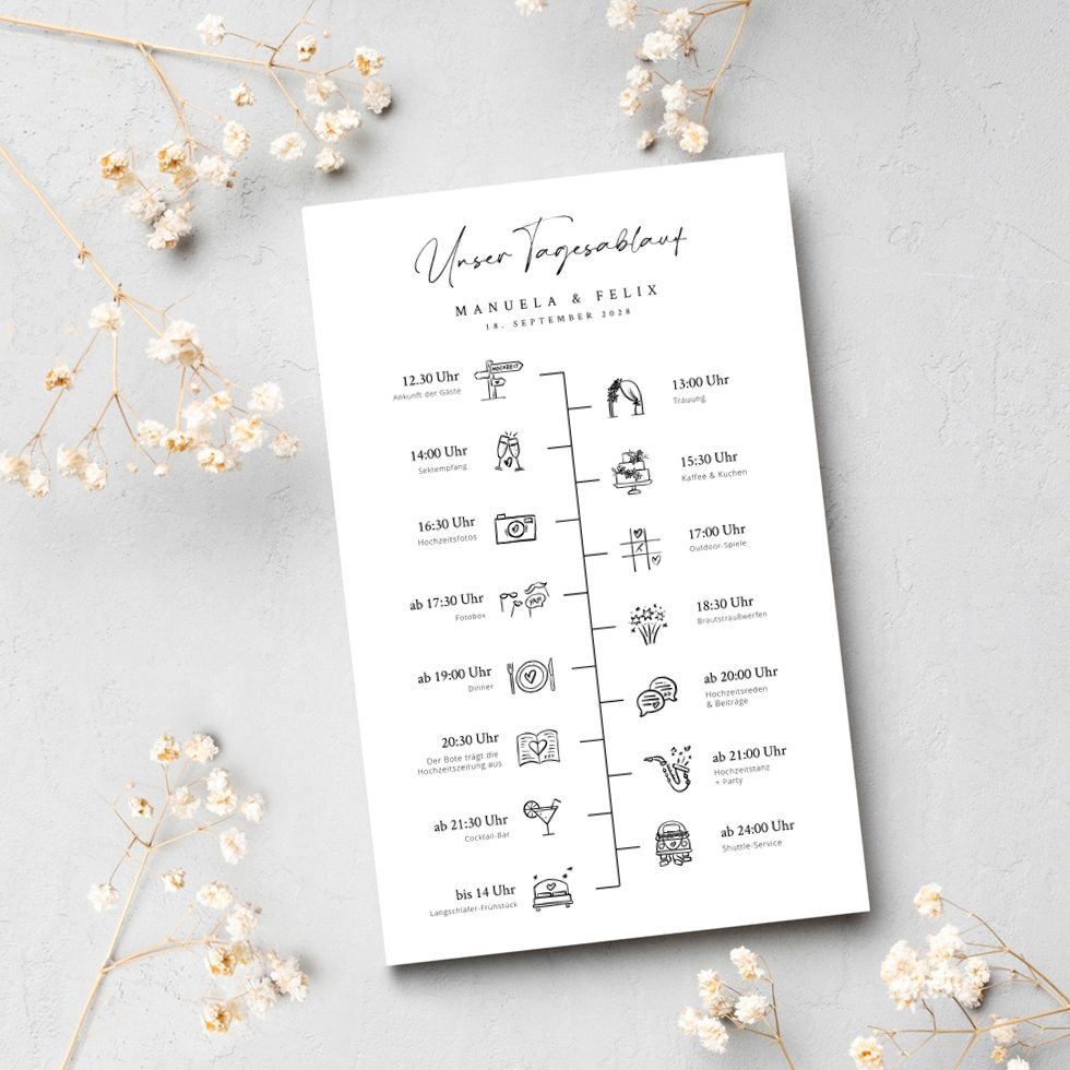 Eure persönliche Tagesablauf Karte wird bei uns individuell perfekt abgestimmt auf euer persönliches Design und das gewählte Papier gedruckt, damit ihr immer das beste Ergebnis erhaltet.