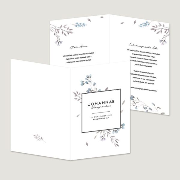 Wir gestalten neben der Außenseite liebevoll euren Eheversprechen-Text auf den Inhaltsseiten.