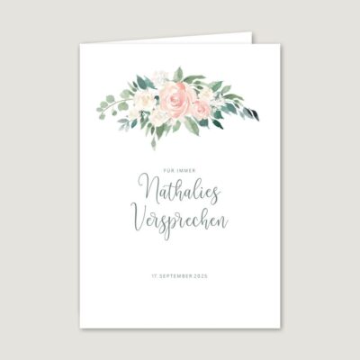 Mit unseren Eheversprechen-Heften haltet ihr euer Versprechen füreinander für die Ewigkeit fest. Ihr könnt es entweder als Vorlage für den Außen-und Innenteil als PDF-Vorlage downloaden oder die Umschläge von uns personalisiert und auf wunderschönes Papier gedruckt erhalten.