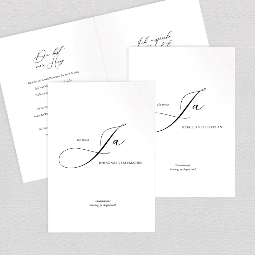 Haltet euer Versprechen füreinander für die Ewigkeit fest. Ihr könnt es entweder als Vorlage für den Außen-und Innenteil als PDF-Vorlage downloaden oder die Umschläge/Hefte von uns personalisiert und auf wunderschönes Papier gedruckt erhalten.