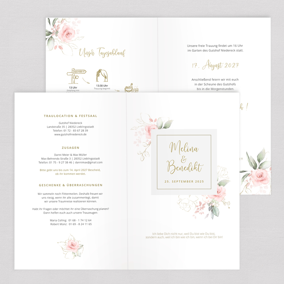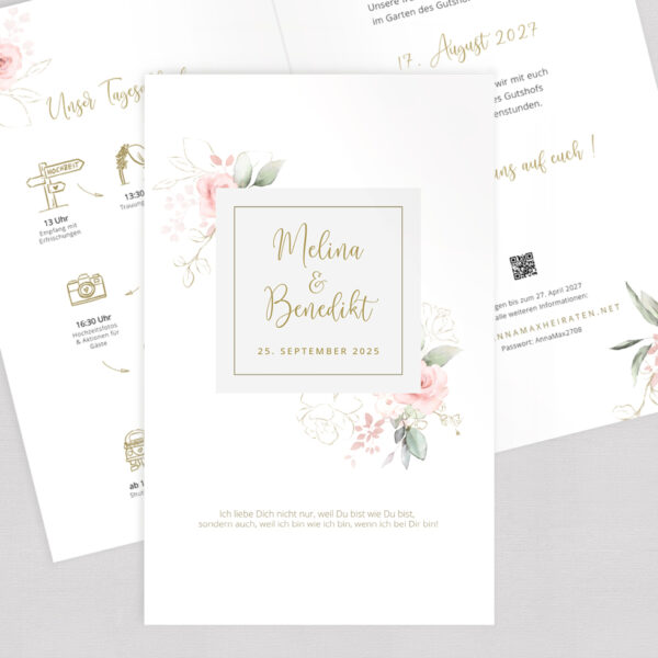 Einladung Hochzeit “Modern Rose” Klappkarte