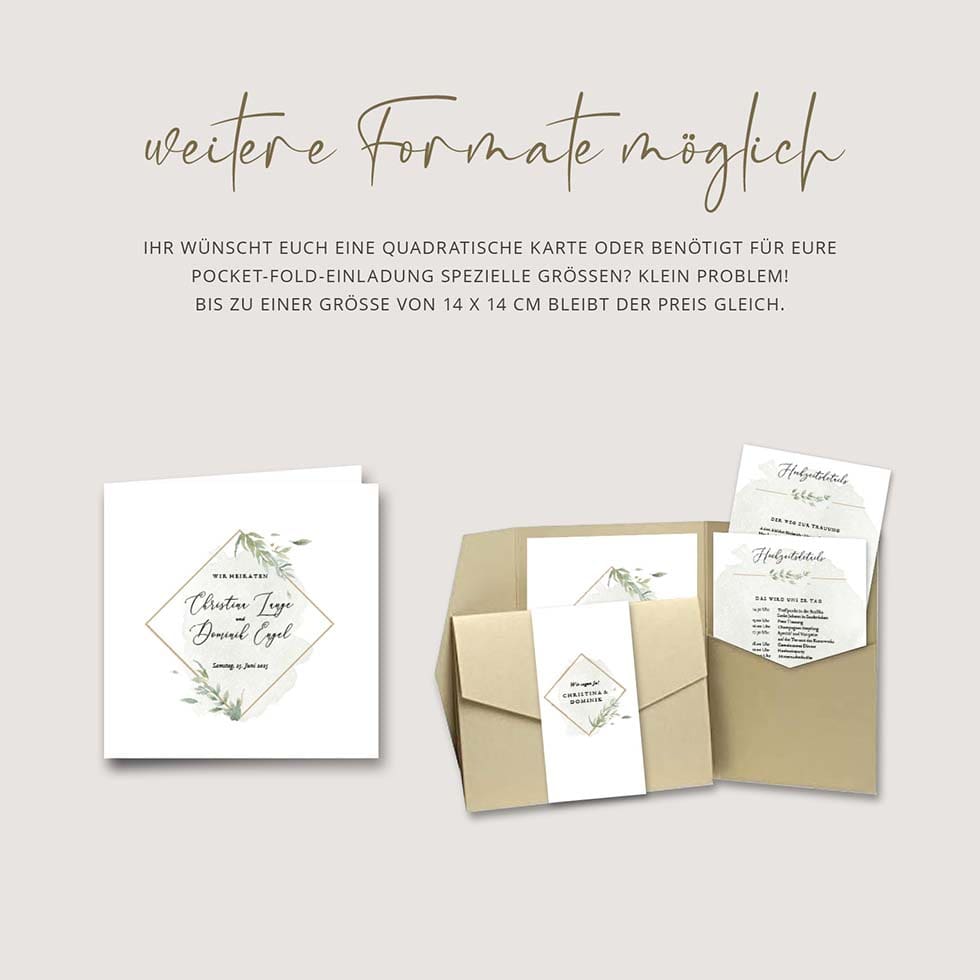 Für einen absolut exklusiven Look bieten wir euch individuell hochwertige Veredelungsmöglichkeiten an wie zum Beispiel eine Goldprägung, Blindprägung oder Letterpress.