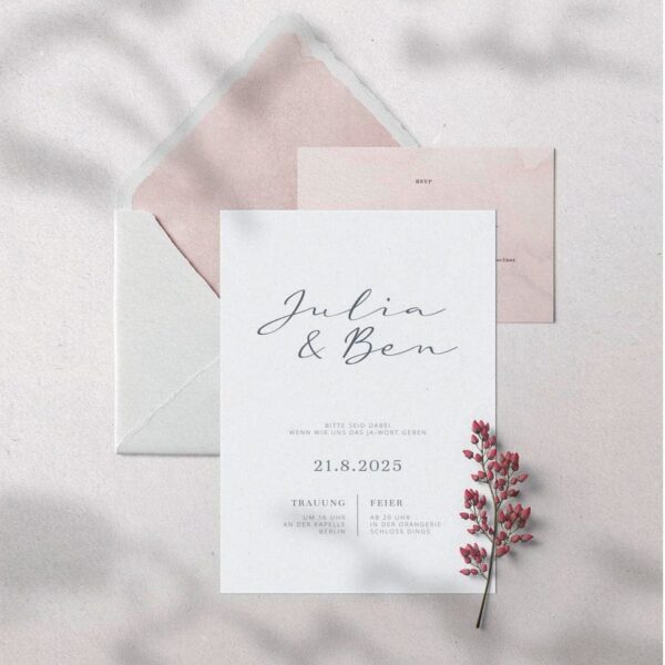Unsere Einladungsvorlagen sind professionell gestaltet, damit ihr nur noch die Mustertexte austauschen müsst.