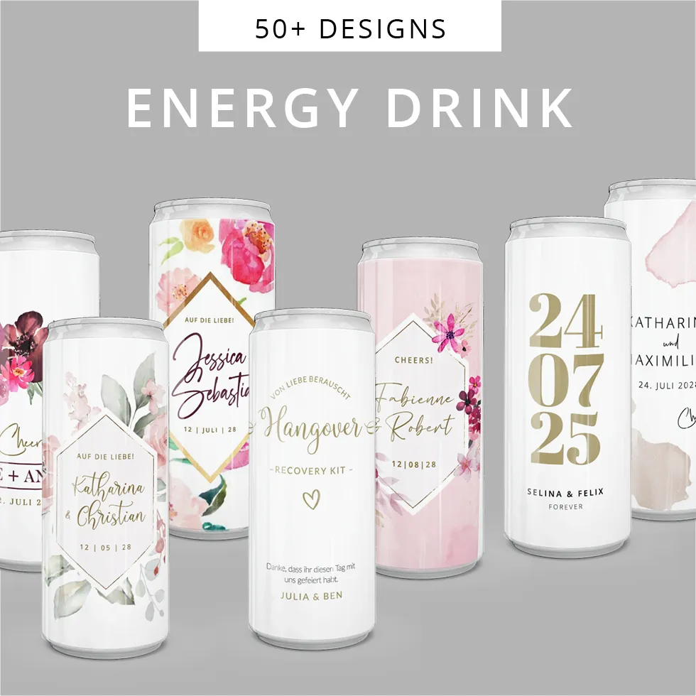 In unserem Online-Designer könnt ihr eueren ganz persönlichen Energy Drink selber machen und euer Dosen Design mit Foto, Logo oder ganz nach euren Wünschen branden.