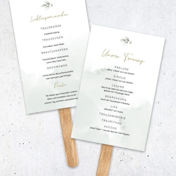 - Editierbare PDF-Vorlage für einen beidseitig bedruckten Hochzeitsfächer