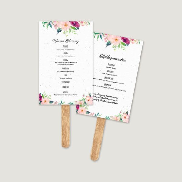 • Editierbare PDF-Vorlage für einen beidseitig bedruckten Hochzeitsfächer
