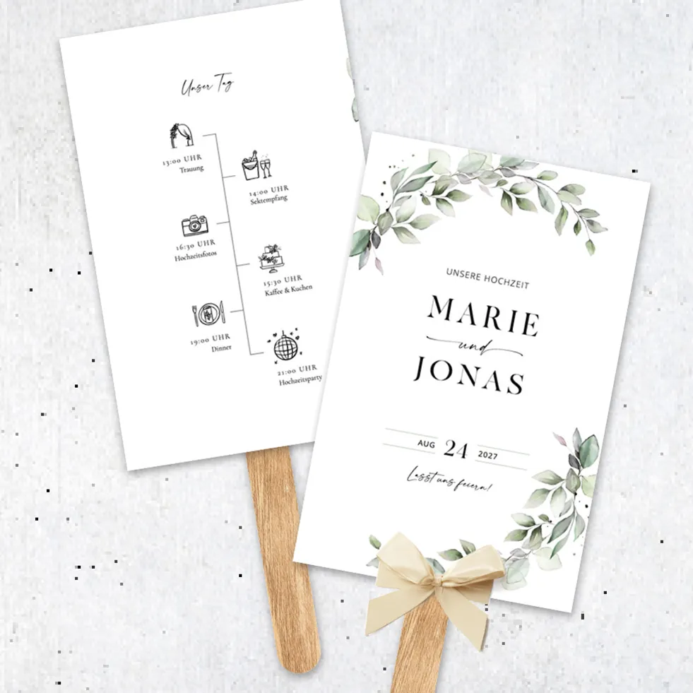 Individuell bedruckte Fächer für eure Hochzeit