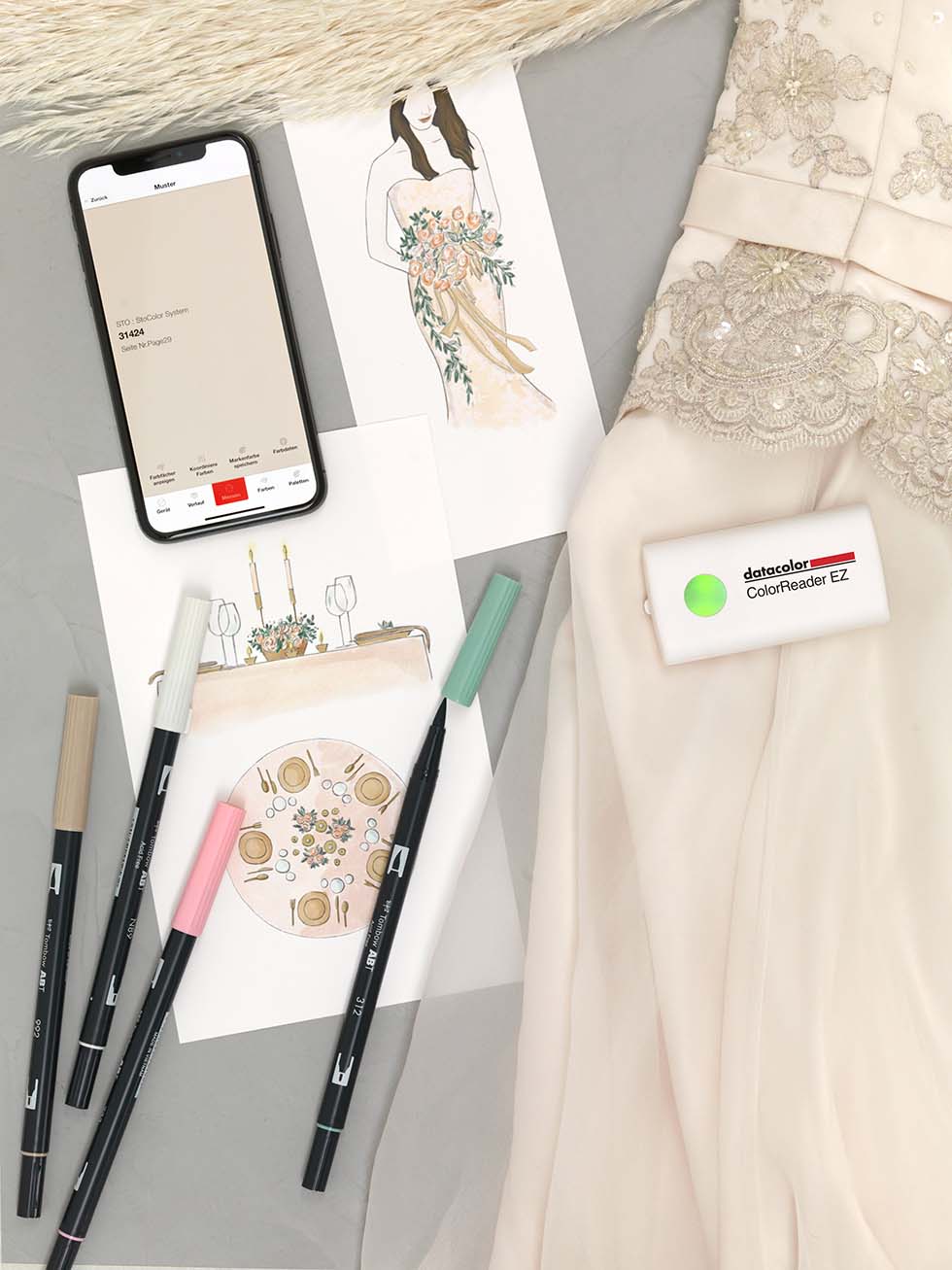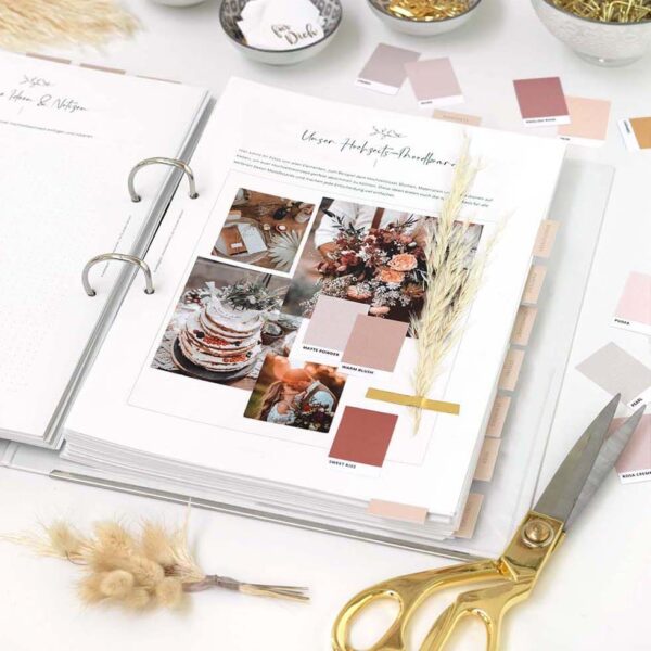 So könnt ihr eurem Floristen und allen Dienstleistern euer Konzept doppelt übermitteln, damit ihr genau die Blumenfarben und Dekoelemente erhaltet, die ihr euch vorstellt.