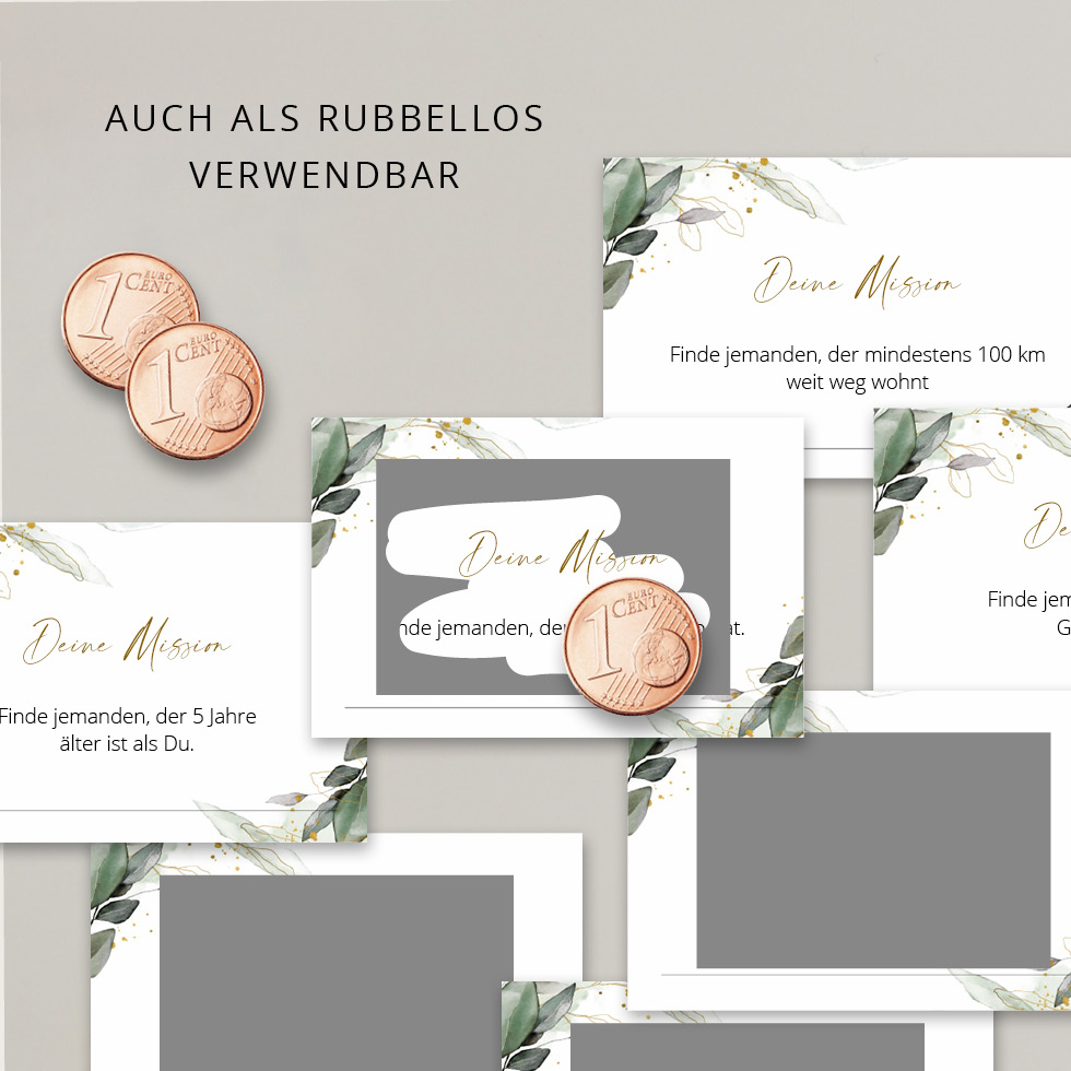 Extratipp: Wer möchte, kann auch Rubbellose erstellen Die Karten sind so gestaltet, dass ihr Rubbelaufkleber im Format 60 x 40 mm* aufkleben könnt.