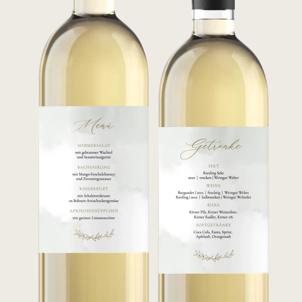 Gestaltet euer individuelles Flaschenetikett für Weinflaschen, Sektflaschen oder Wasser-Flaschen als Menükarte und Getränkekarte (2 Aufkleber im Set)