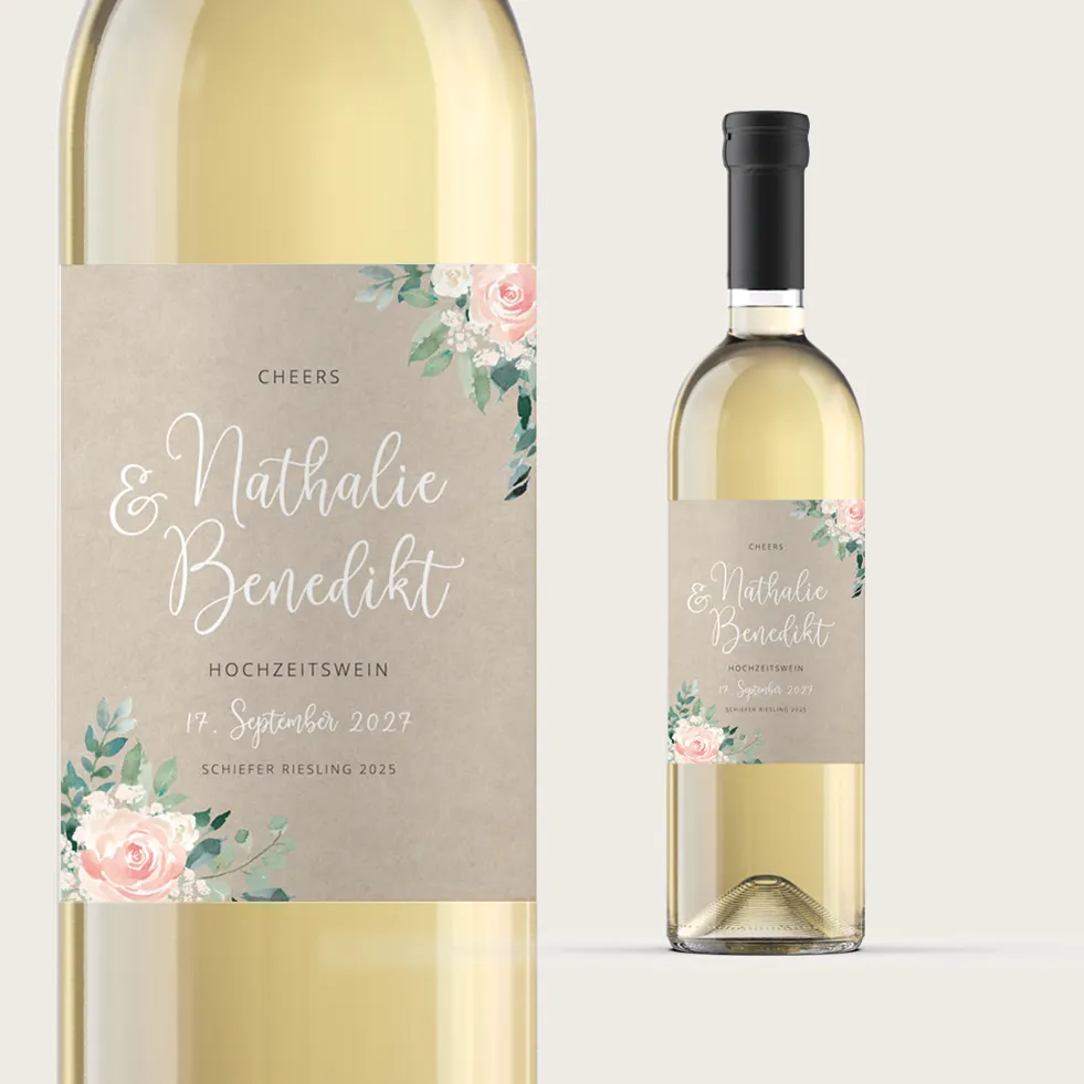Gestaltet euer individuelles Flaschenetikett für Weinflaschen, Sektflaschen oder Wasserflaschen – zur Hochzeit, als liebevolles, persönliches Geschenk oder für Jubiläen.