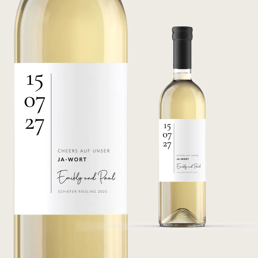 Gestaltet euer individuelles Flaschenetikett für Weinflaschen, Sektflaschen oder Wasserflaschen – zur Hochzeit, als liebevolles, persönliches Geschenk oder für Jubiläen.