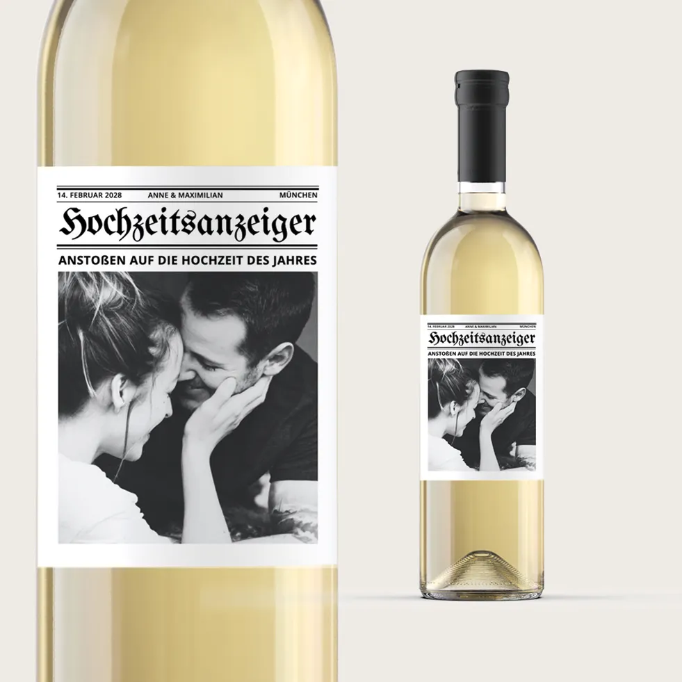 Gestaltet euer individuelles Flaschenetikett für Weinflaschen, Sektflaschen oder Wasserflaschen – zur Hochzeit, als liebevolles, persönliches Geschenk oder für Jubiläen.