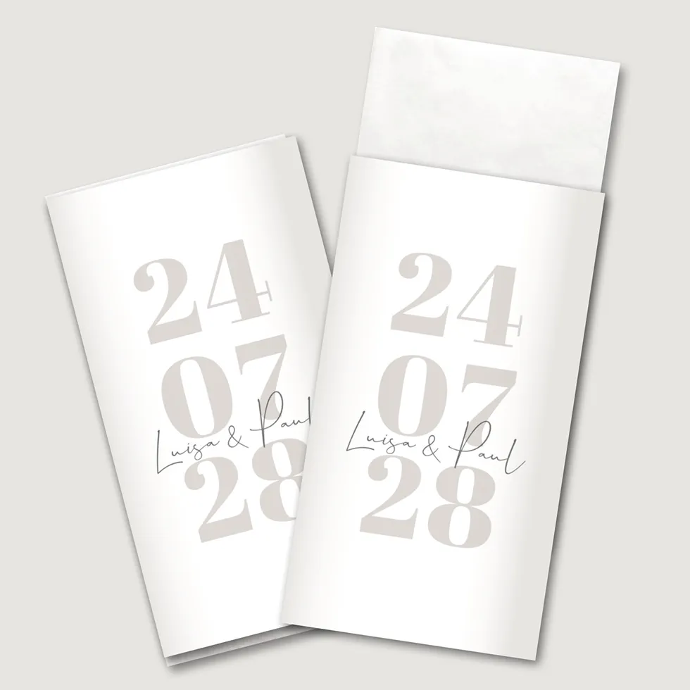 Gestaltet ganz individuelle Freudenträenen Taschentücher Banderolen für eure Hochzeit. Sie ummanteln das Taschentuch komplett und machen es damit absolut hygienisch.
