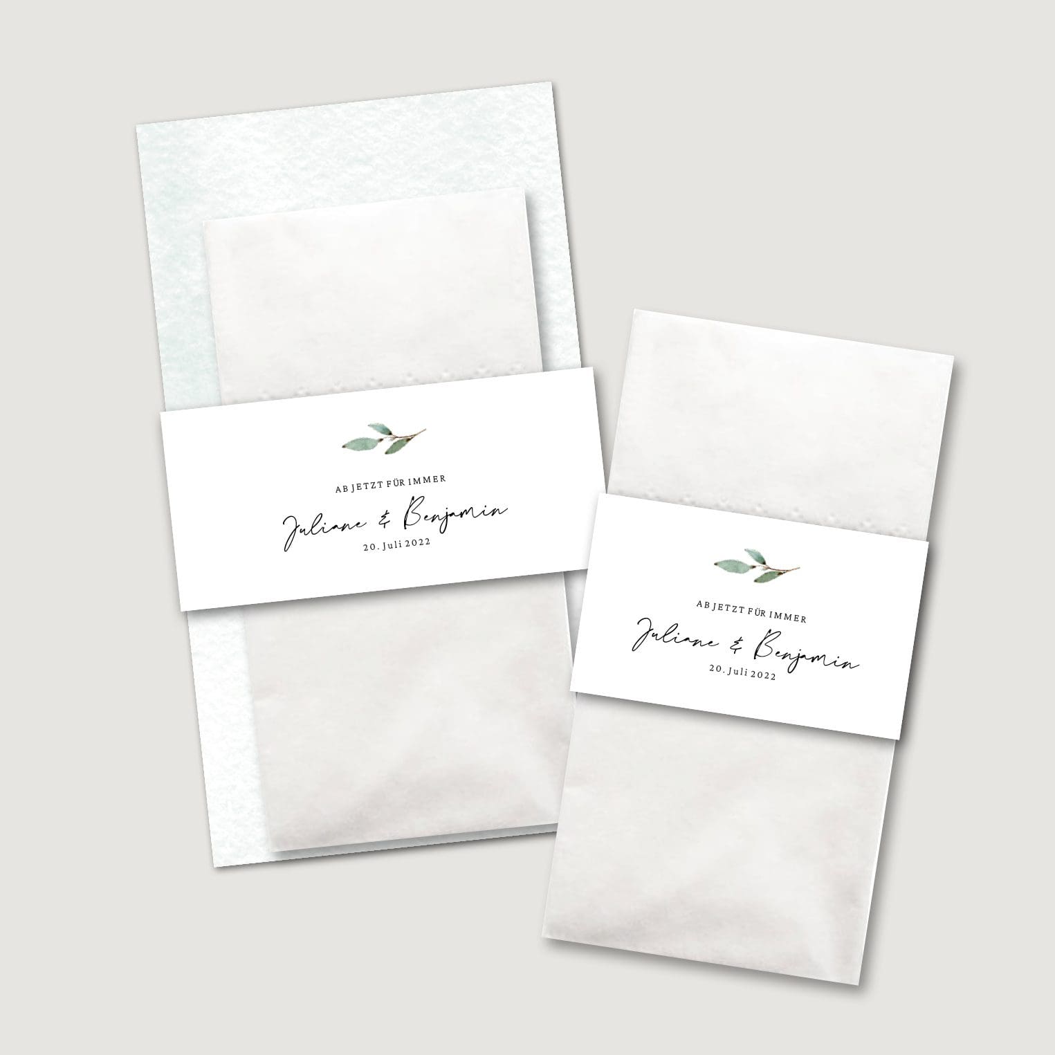 Erstellt wundervolle personalisierte Freudentränen Taschentücher mit euren Namen sowie dem Hochzeitsdatum oder einem Spruch. Dabei könnt ihr wählen, ob ihr nur die Banderole verwenden möchtet oder tolle Karten erstellen wollt.
