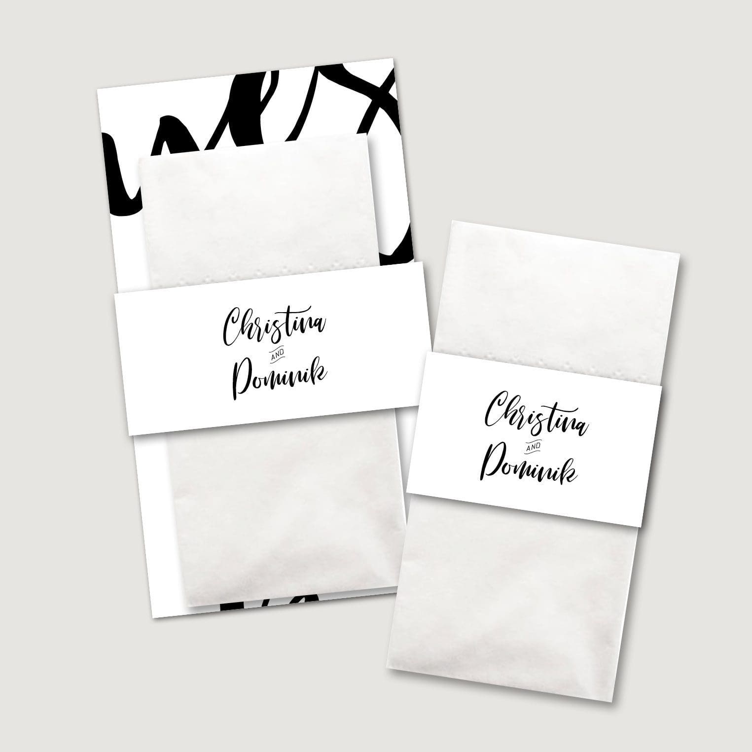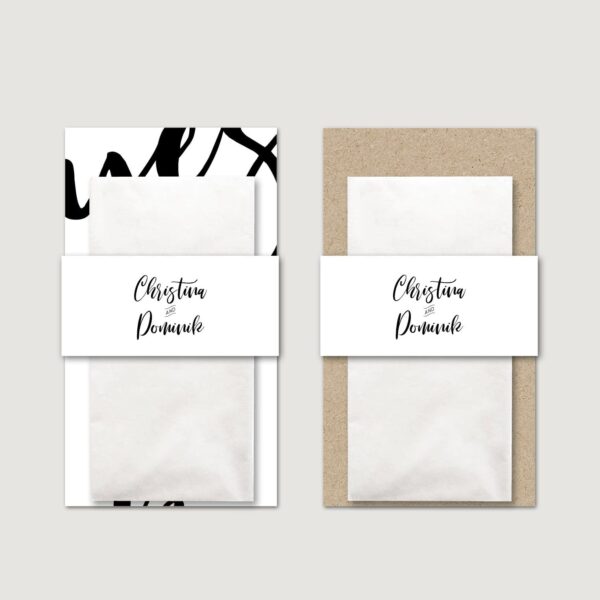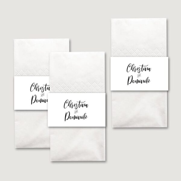 Stellt eure Freudentränen Taschentücher zur Selbstbedienung in einem kleinen Kästchen am Eingang zur Trauung auf. Durch den oberen Rad kann sich jeder Gast bedienen ohne die anderen Taschentücher zu berühren. Alternativ könnt ihr die Banderolen benutzen, um die Freudentränen Taschentücher in den Umschlag eures Trauhefts oder auf der Rückseite einer Tagesablauf-Karte zu kleben.