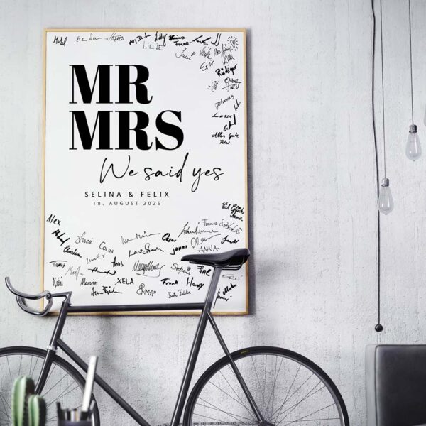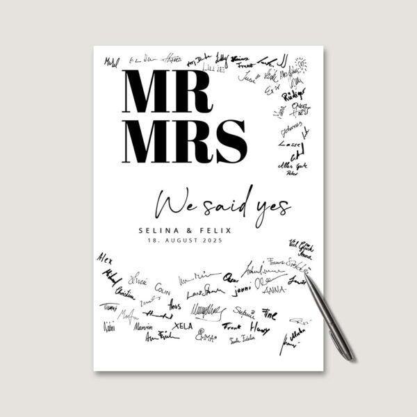Gestaltet mit eurem individuellen Text ein personalisiertes Gästebuch als Bild, das ihr nach der Hochzeit gerne an die Wand hängen werdet.
