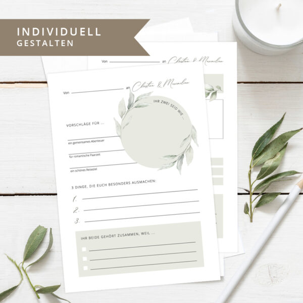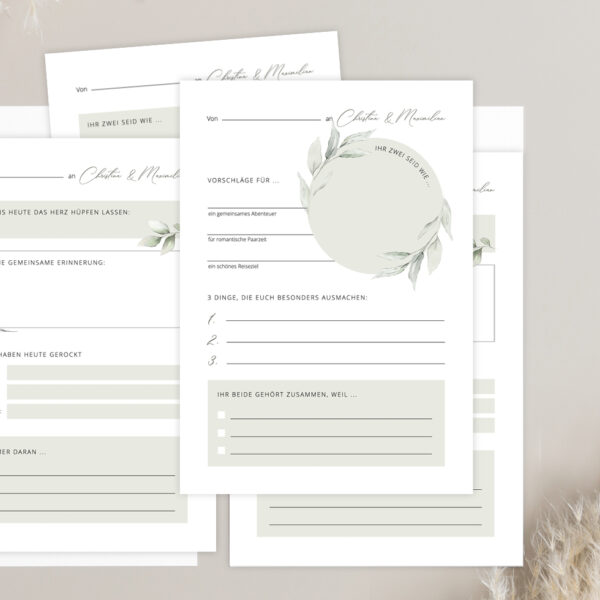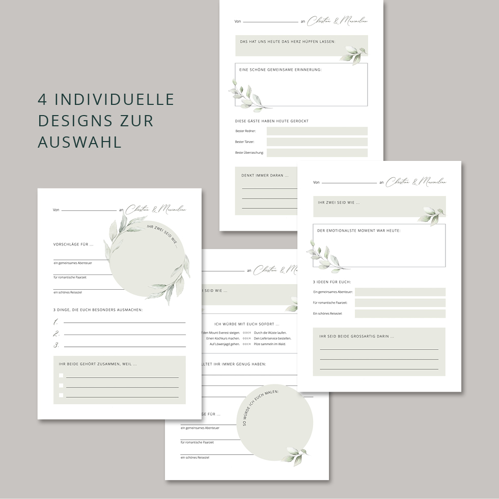 Gestaltet liebevolle Gästebuchkarten mit schönen Fragen und Aufgaben für die schönsten Erinnerungen