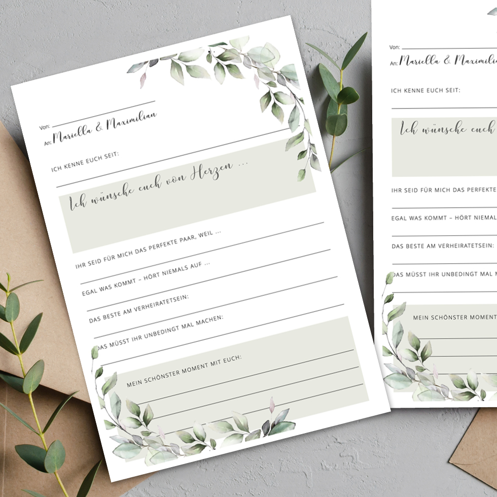Gästebuchkarten Hochzeit “Greenery” DIN A5 (komplett individuell)