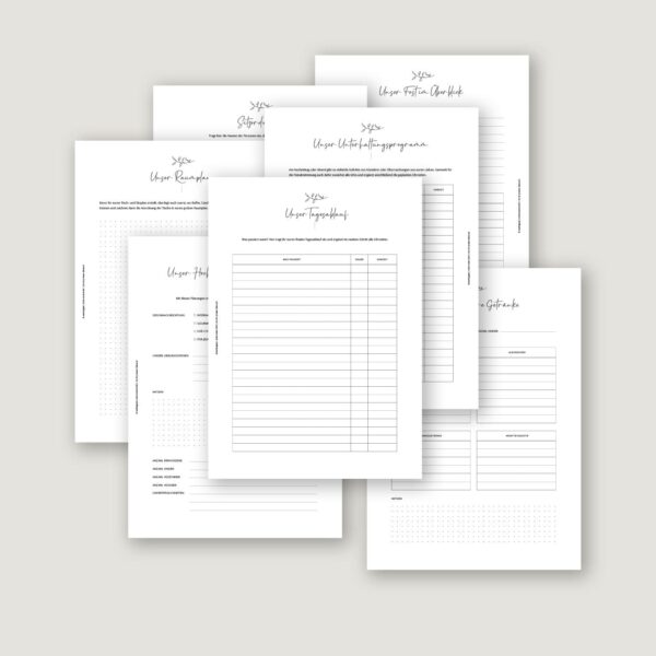 Zu jedem Planungspunkt erhaltet ihr durchdachte Checklisten und Ausfüllbögen, die euch garantiert nichts vergessen lassen.