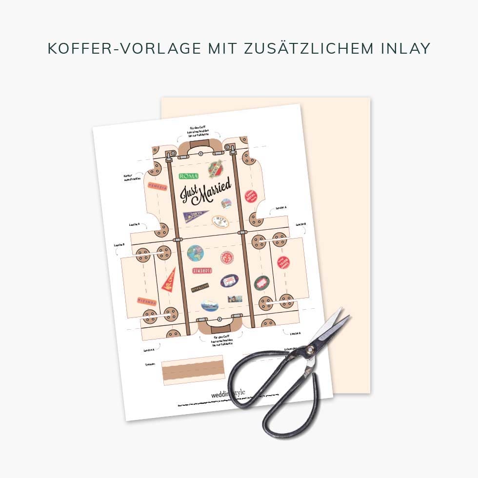 - Ladet euch Vorlage für den Reisekoffer herunter und druckt sie auf etwas dickeres, weißes Papier.