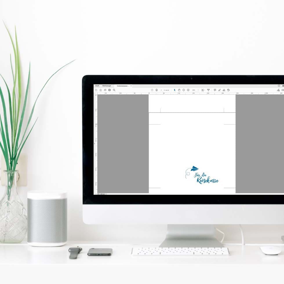 - PDF-Vorlage für den Deckel mit Aufschrift "Für die Reisekasse" auf DIN-A3-Format montiert